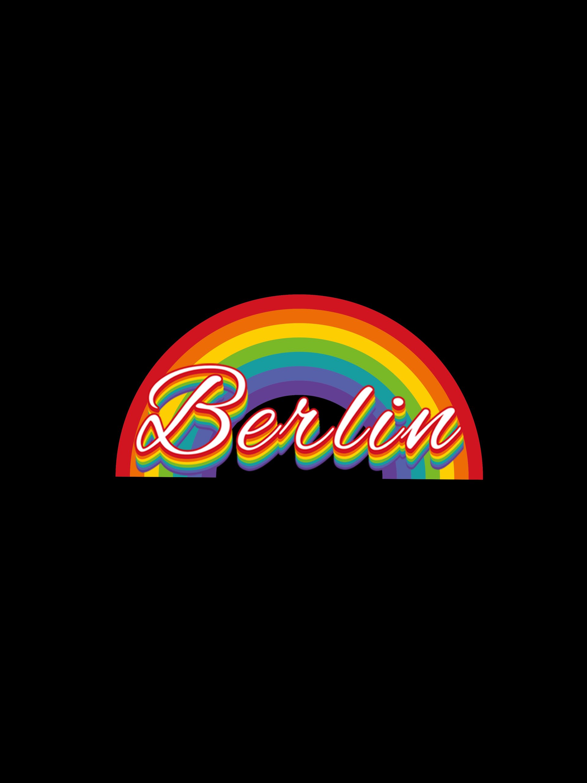 T-shirt made of organic GOTS certified cotton with a rainbow in pride colors and the text “Berlin”.