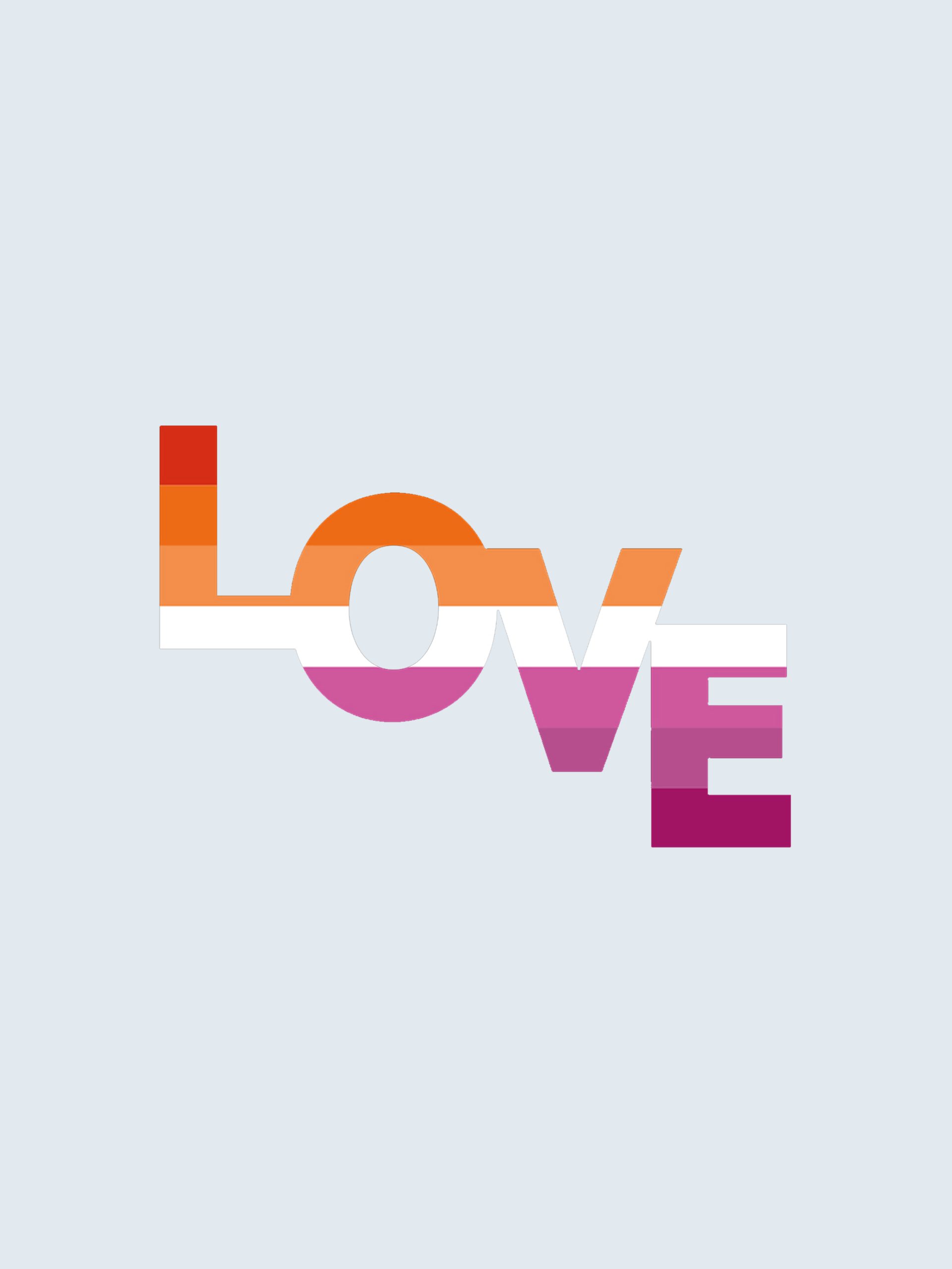 T-shirt made of organic GOTS certified cotton with a print of the text “LOVE” in the flag symbolizing lesbian pride.