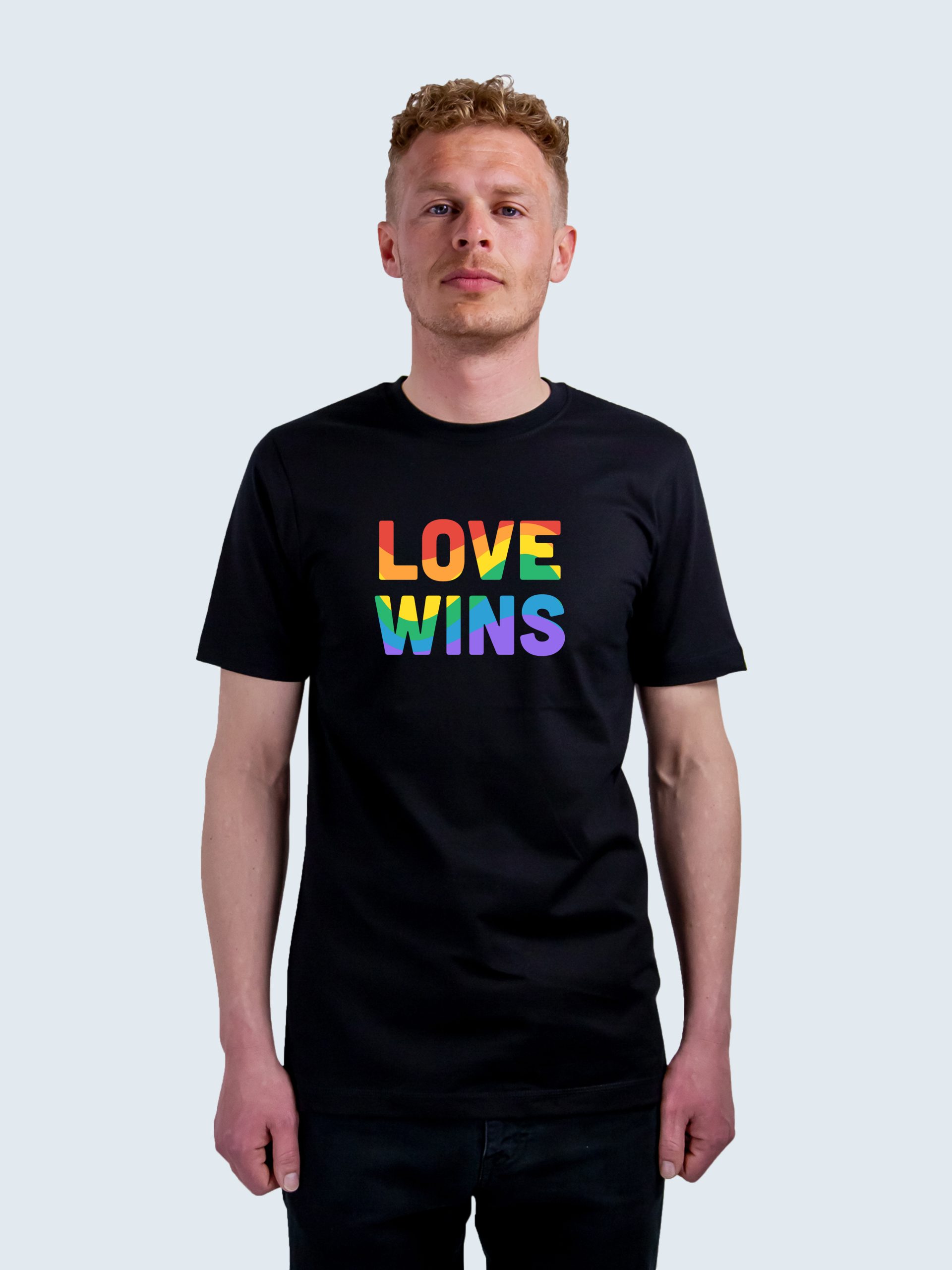T-shirt made of organic GOTS certified cotton with the text “Love Wins”.