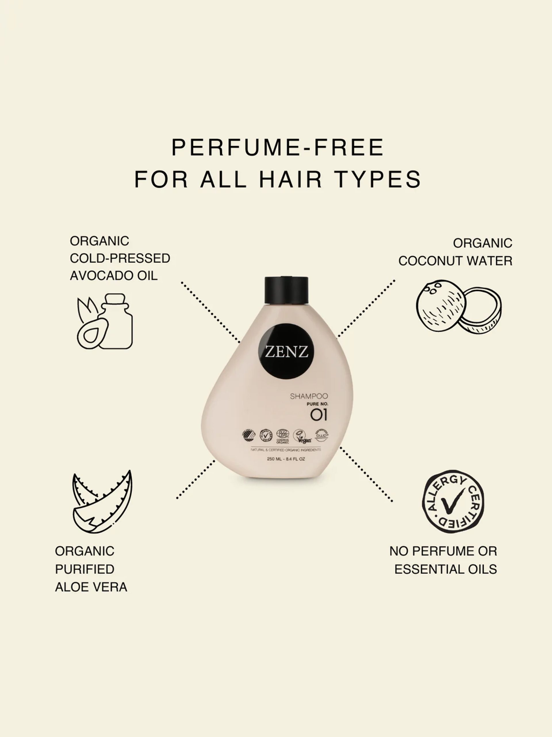 - Nordic Swan Ecolabel and organic certified shampoo from Danish Zenz Organic