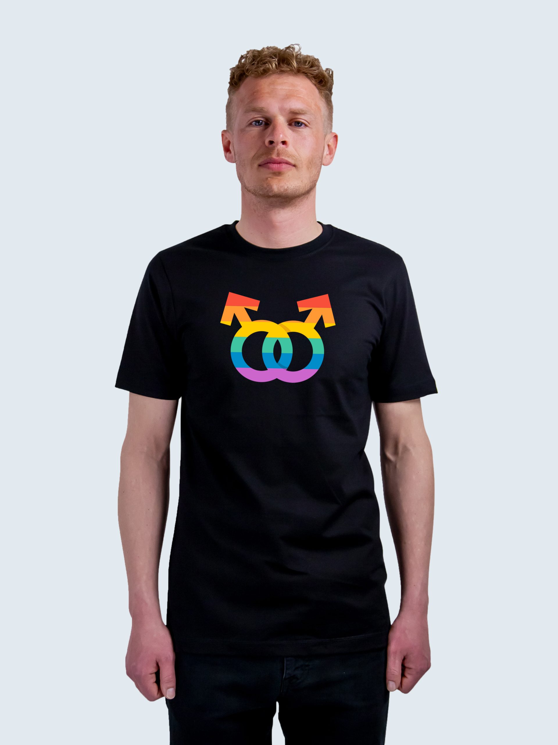 T-shirt af økologisk GOTS certificeret bomuld med print af homoseksuelt symbol.