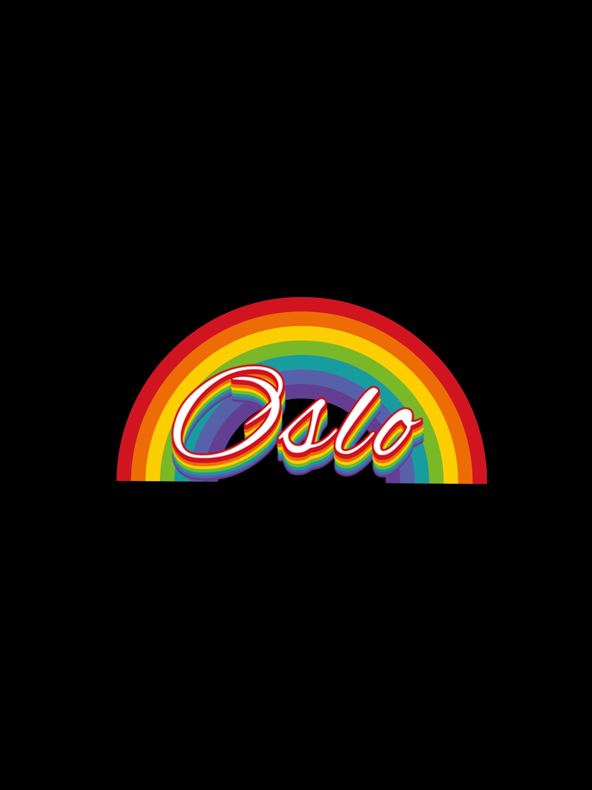 T-shirt af økologisk GOTS certificeret bomuld med en regnbue i pridefarver og teksten “Oslo”.