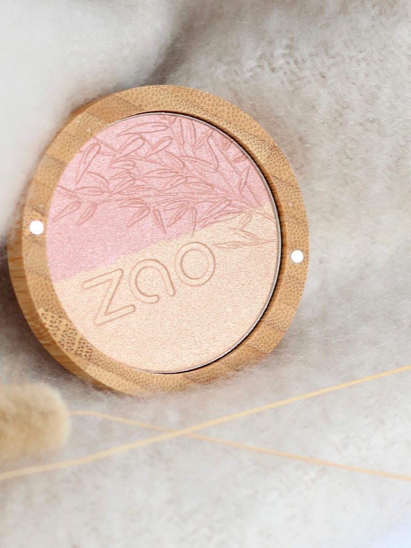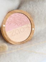 Økologisk og vegansk shine up pudder fra franske ZAO. Det er et 2-i-1 pulver, da det både kan bruges som highlighter og øjenskygge. Den tilfører luminositet til din hud og giver udstråling til øjne og ansigt. Den er pulveriseret, hvilket gør, at den er velegnet til alle hudtyper. Highligteren indeholder nærende ingredienser såsom økologisk hørfrøolie, økologisk olivenbladekstrakt og bambuspulver, der plejer og holder din hud hydreret.